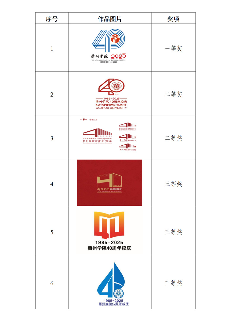 四秩芳华传薪火,立心力行向未来。2025年是学校建校40周年,为展示学校的特色与形象,营造良好的校庆氛围,学校组织开展了40周年校庆标识(LOGO)设计方案征集活动。经专家评审、综合评定、会议审定,评选出校庆标识(LOGO)一、二、三等奖,其中,一等奖作品作为校庆标识备选方案。现将校庆标识(LOGO)评审结果公布如下: